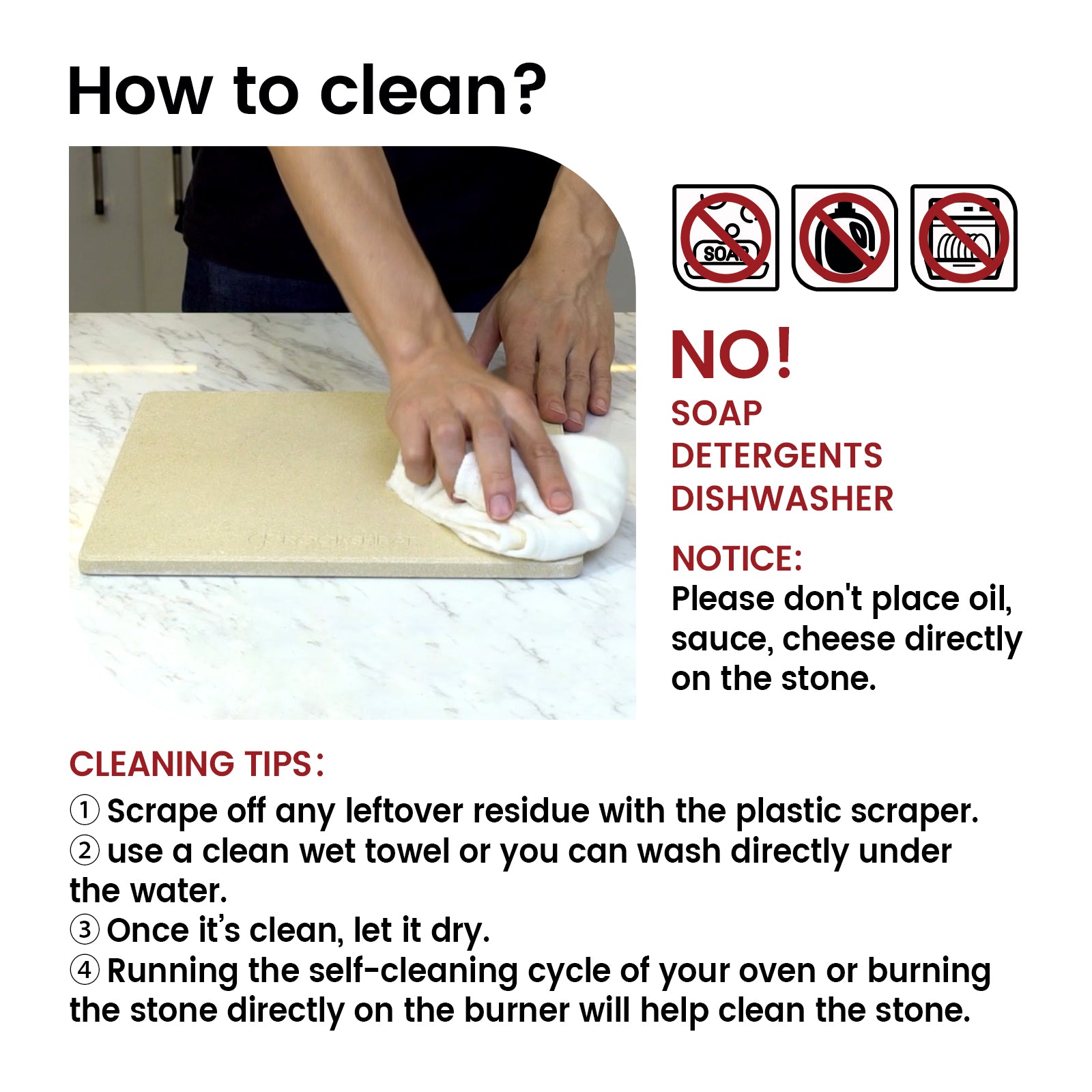 - INNOVATIVE DOUBLE-FACED BUILT-IN HANDLES DESIGN. ROCKSHEAT grill pizza stone has double-faced with handles that are built-in and is designed for convenience. It helps to save space. It is designed in such a practical way which makes transferring easier. One ROCKSHEAT rectangle pizza stone acts as two normal handled ones.